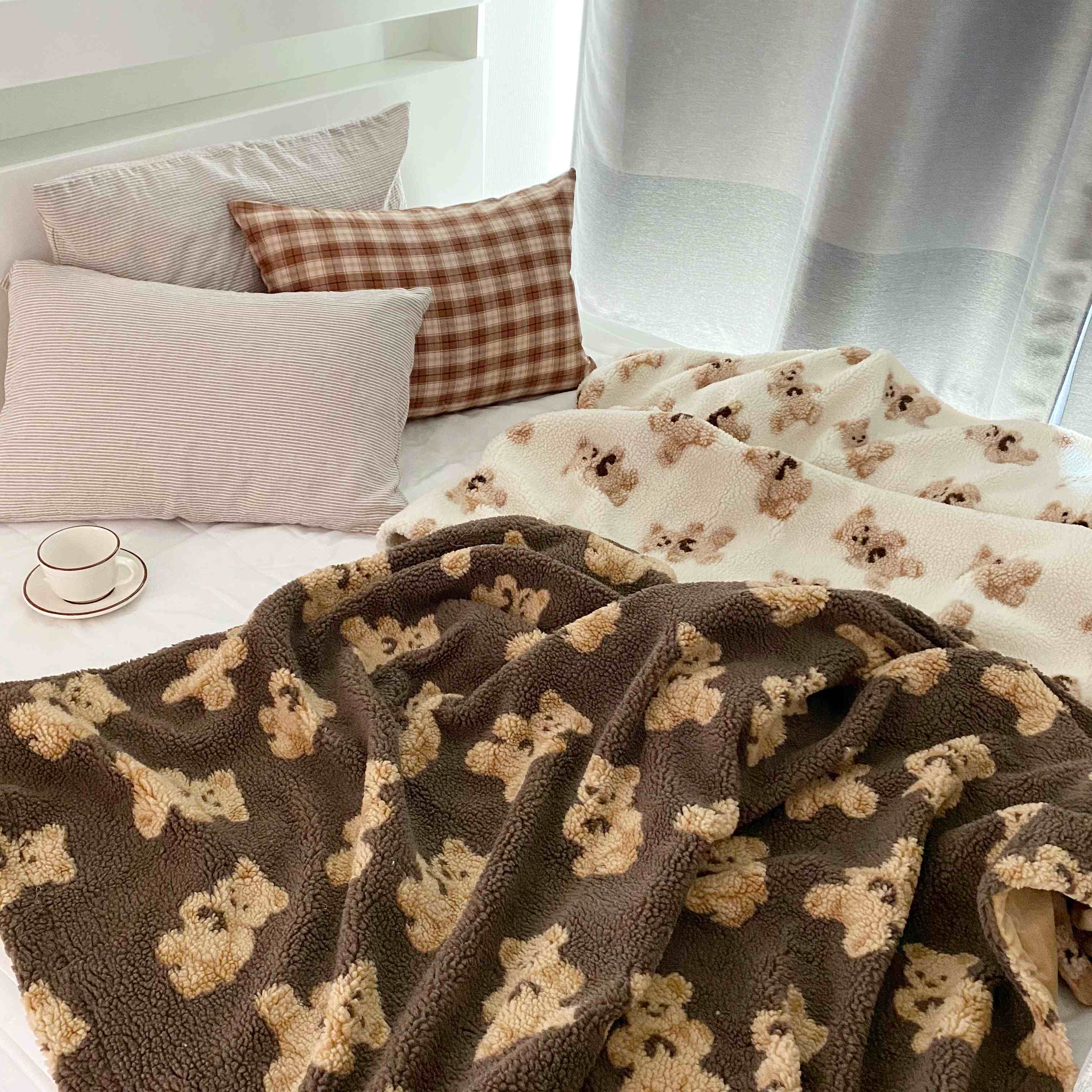 [국내자체제작]극세사 곰돌이 담요 아기 뽀글이 양면 이불 무릎 쇼파 차박 캠핑 소품 블랭킷