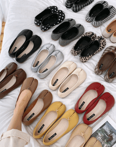 15Color 체크 땡땡이 타비 말굽 발가락 플랫슈즈 단화