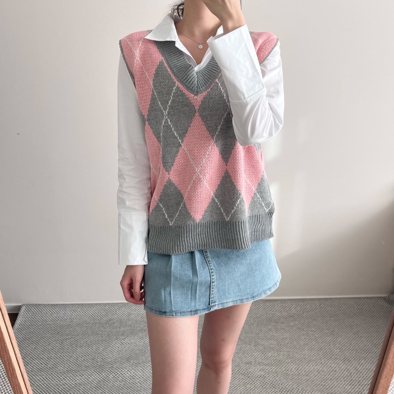 [1+1할인/꾸안꾸/소장강추/활용도좋음/가을필수템] 아가일 브이넥 v다이아몬드 조끼 3color