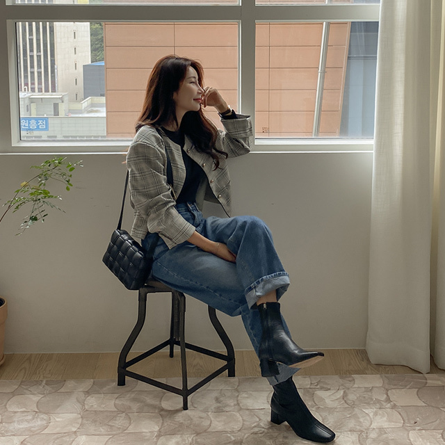 노카라골드버튼체크숏자켓