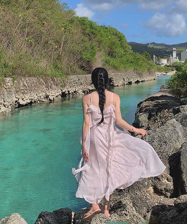 샤랄라 쉬폰 나시 원피스 / 동남아코디 코첼라코디 코첼라원피스 나시원피스코디 여리여리 니사원피스