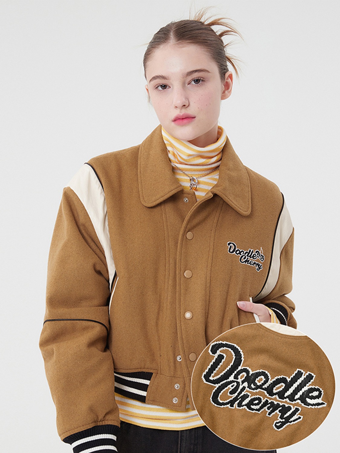 두들 체리 바시티 자켓 [베이지]