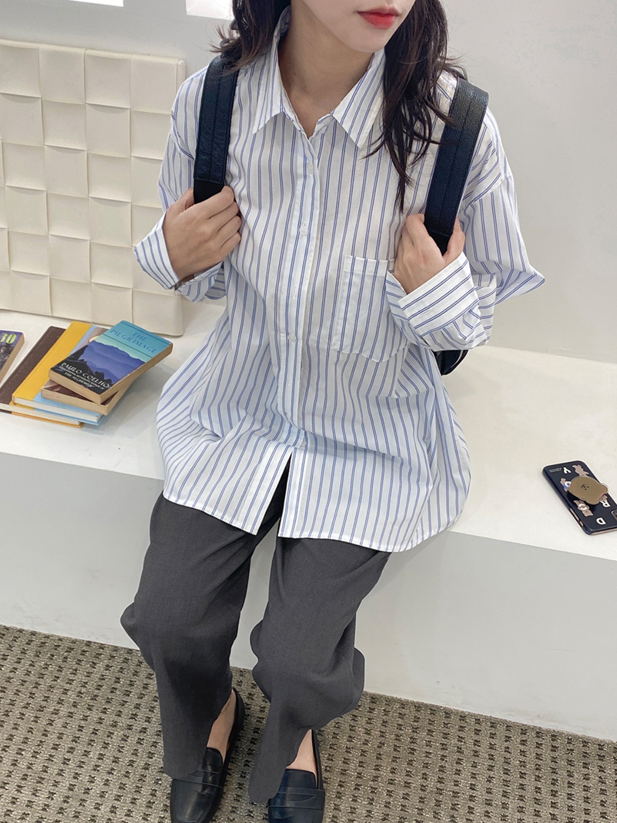 여자 셔츠 LCM009 여성 스트파이프 포켓 카라 데일리 남방