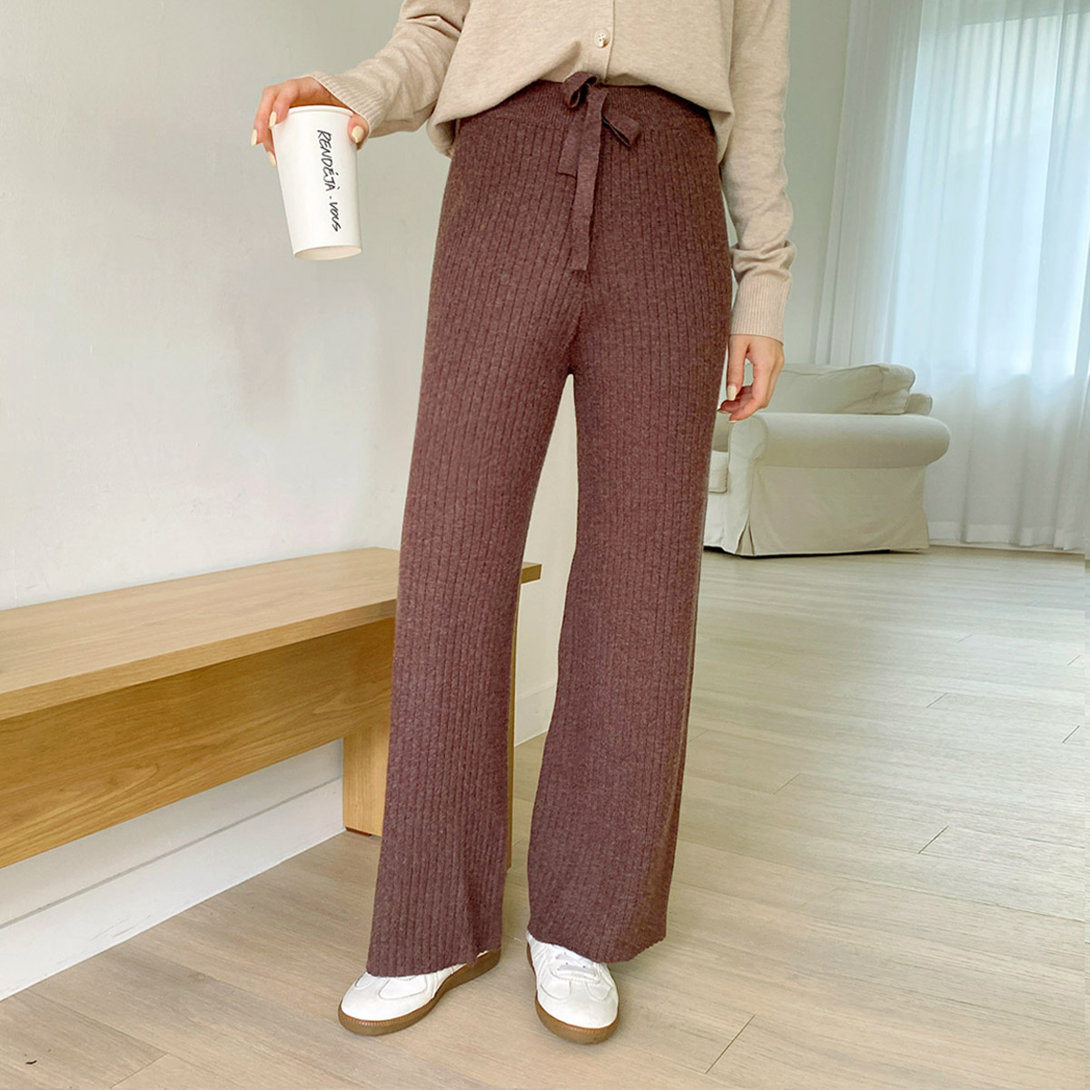 [무배] [국내제작] 차콜슬랙스 키작녀바지 니트 밴딩 편한 팬츠 베이지슬랙스 바지