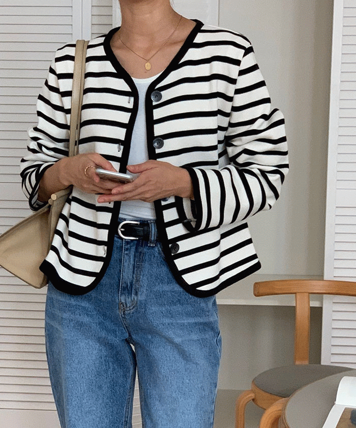 [ SALE🔥블랙 ] 가디건 코디 단가라 라운드 니트 스트라이프 니트긴팔 하객룩 결혼식코디 대학생 개강룩 캠핑룩(블랙,레드,챠콜)