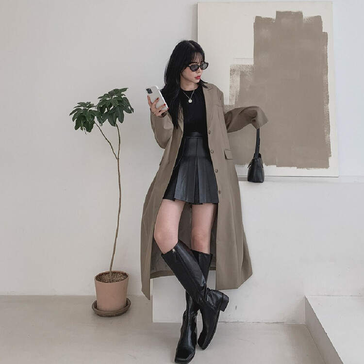 여성 베이직 루즈 롱 코트 연카키 블랙 가을 감성룩 여자 기본 패피 꾸안꾸