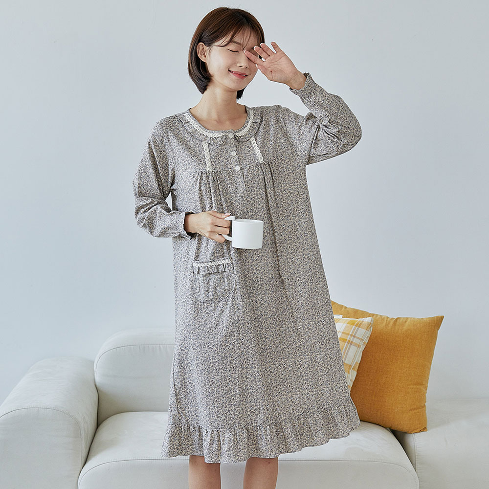 홈원피스 크라운 면잠옷 개버딘 긴팔 꽃무늬 편한옷 홈드레스