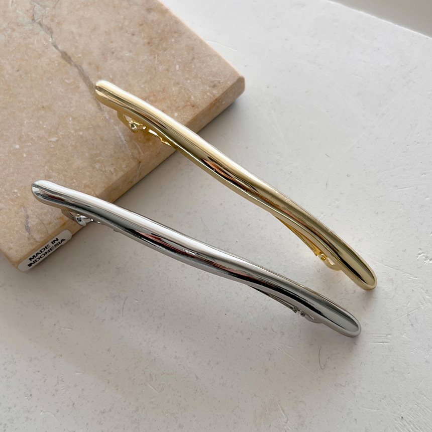 [무배] 메탈 웨이브 일자 자동 헤어핀 (2color)