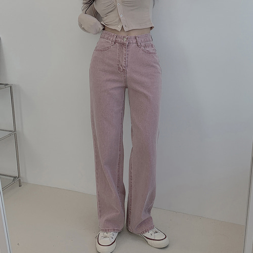 #세일 [ 뮤트톤/피그먼트 ] 테미 하이웨스트 핑크,브라운 일자 와이드 팬츠