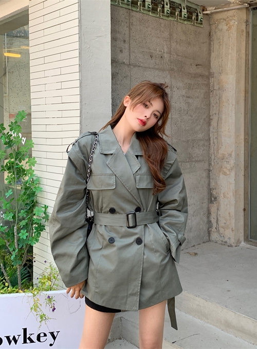 트렌치 코트 더블 루즈핏 하프 반 코트 폴로 넥 긴팔 가을 여자 클래식 데일리룩 아우터 카키 자켓 하객룩 결혼식룩