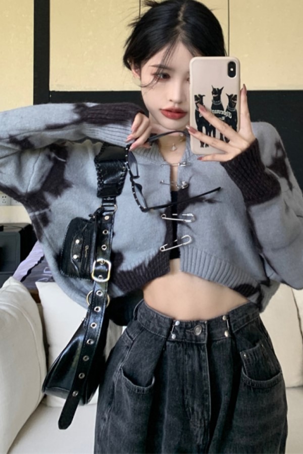 베이 타이다이 긴소매 롱슬리브 옷핀 장식 니트 가디건