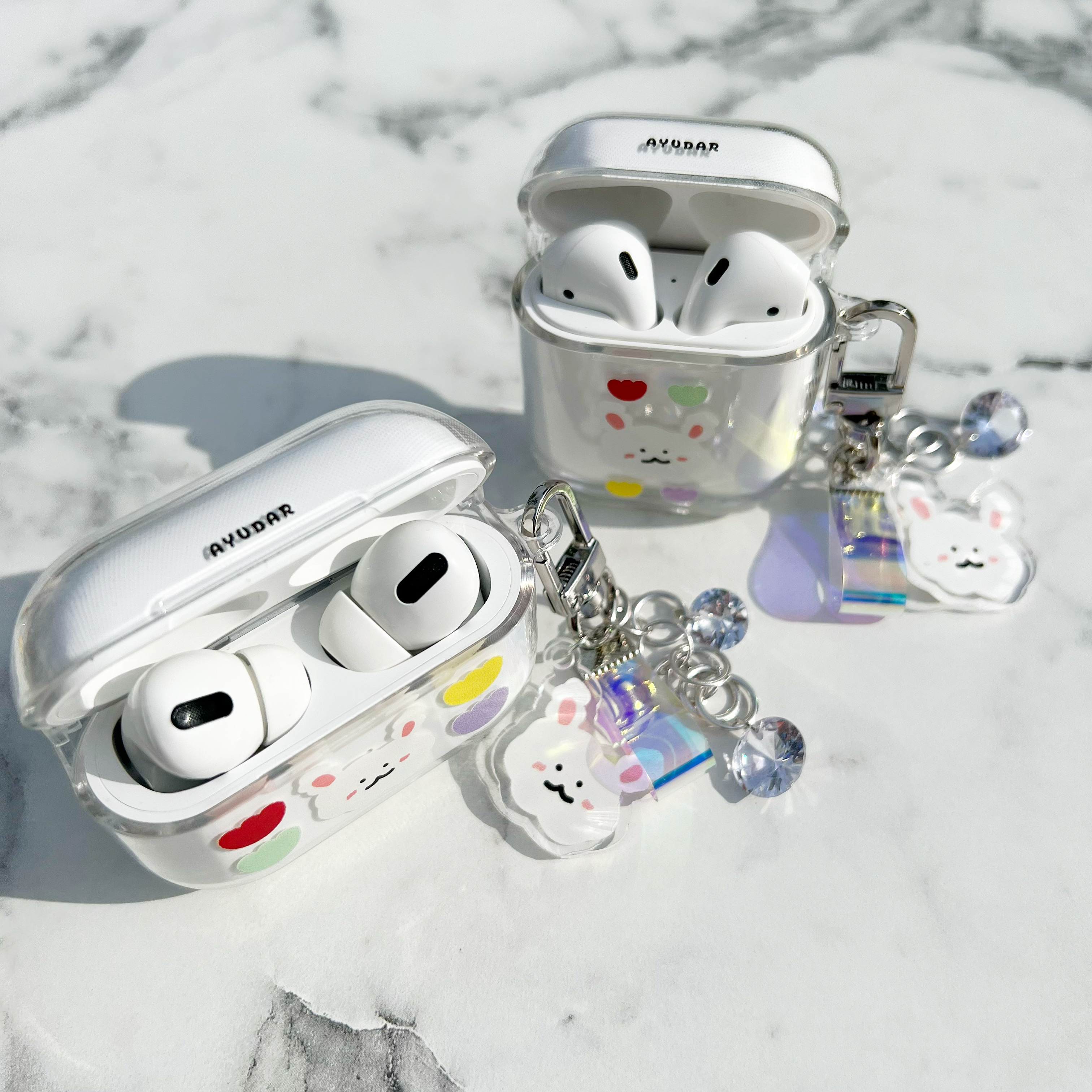 귀여운 에어팟 케이스 키링 세트 일체형 투명하드케이스 에어팟 1세대/2세대 에어팟프로