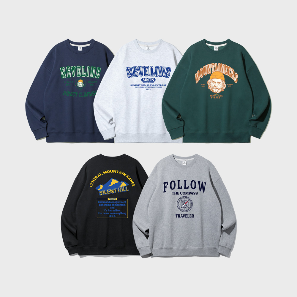 앨빈클로 마운티널스 레터링 시리즈 오버핏 맨투맨 5종 균일가 패키지