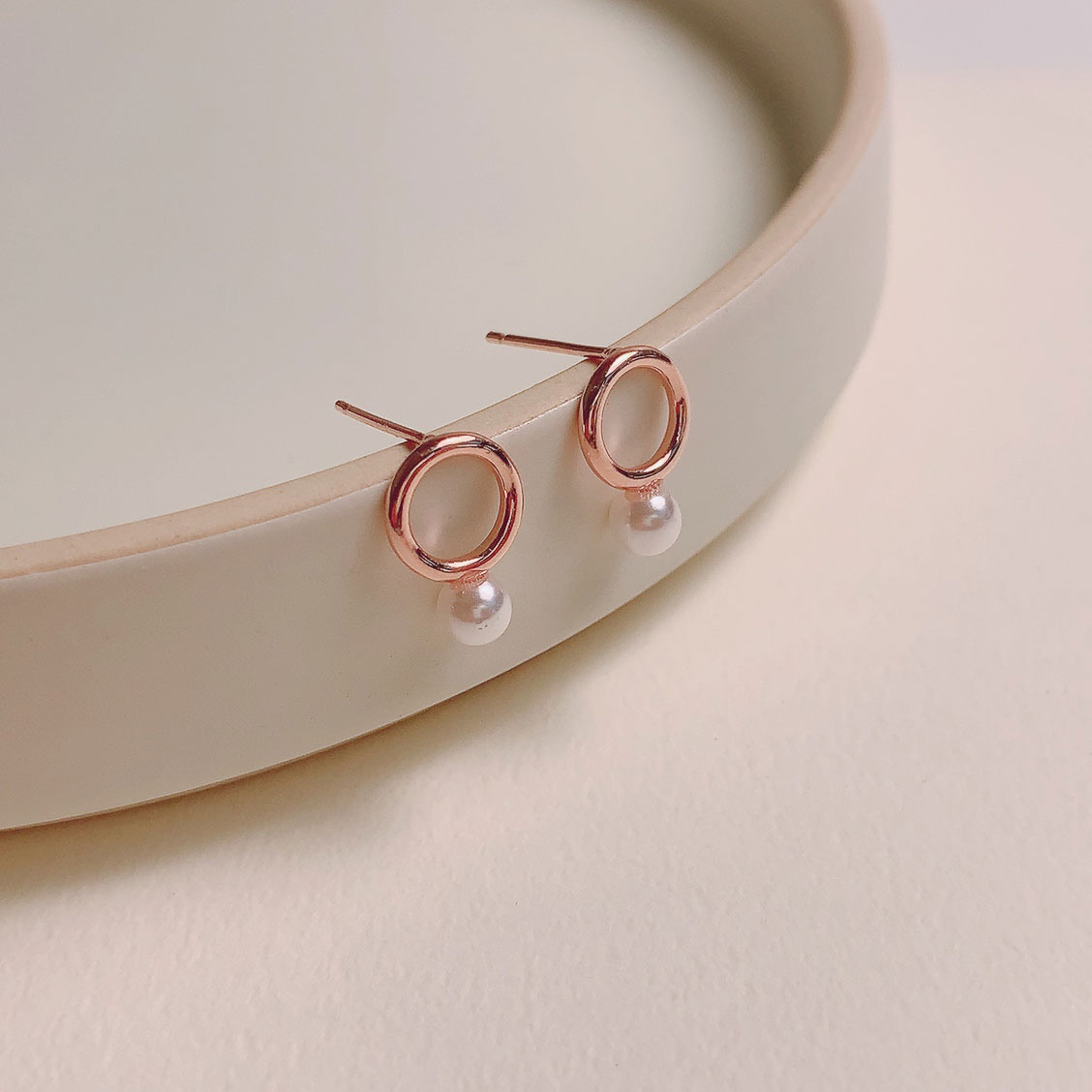 실버925 로즈골드 도넛 미니 진주 스터드 귀걸이