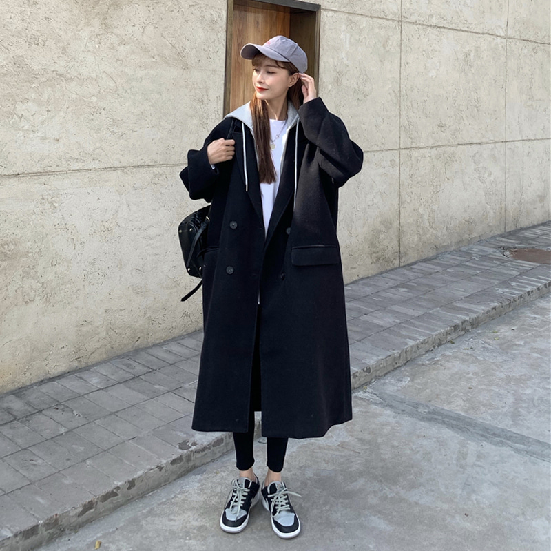 그레이 후드티 레이어드 모자 블랙 모직 롱 코트 자켓 가을 겨울 신상 캐주얼룩 스쿨룩