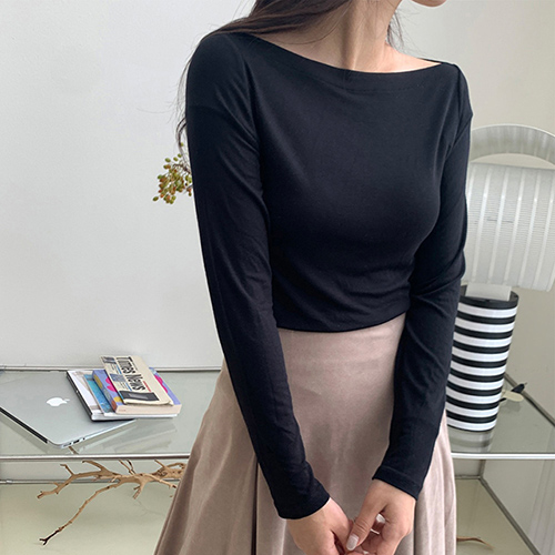 [베이지블랙오늘출발]보트넥 레이온 긴팔 티셔츠 4color
