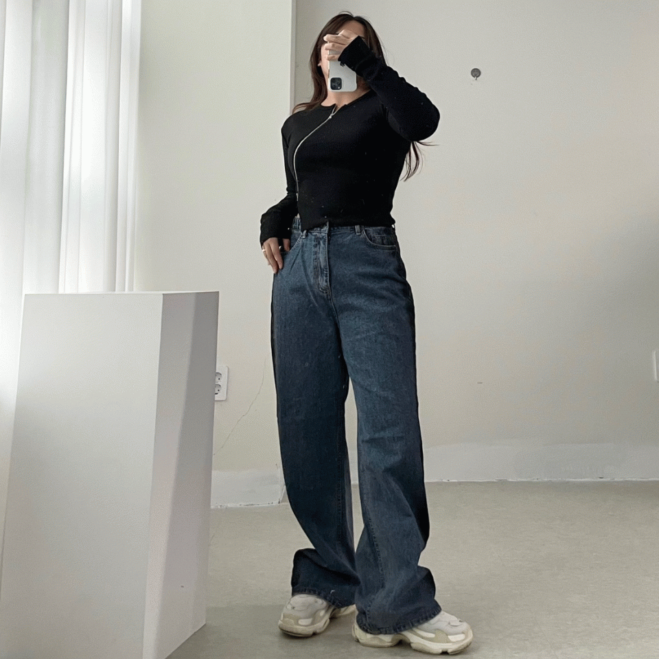 ♥자체제작♥ S~XXL 반전 와이드 청바지 (히든밴딩)