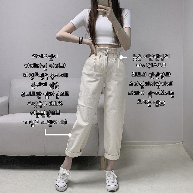 *체형커버*[여름바지/모델강추!]프릴 히든밴딩 하이웨스트 보이핏 데님 린넨팬츠