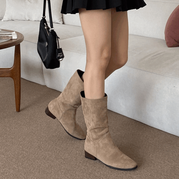 [당일발송]아루 슬림 스퀘어 스웨이드 셔링 미들 부츠