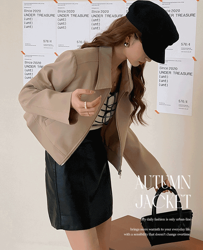 [주문폭주/핏굿] 투웨이 지퍼 카라넥 크롭 스웨이드 면 자켓 - 2color