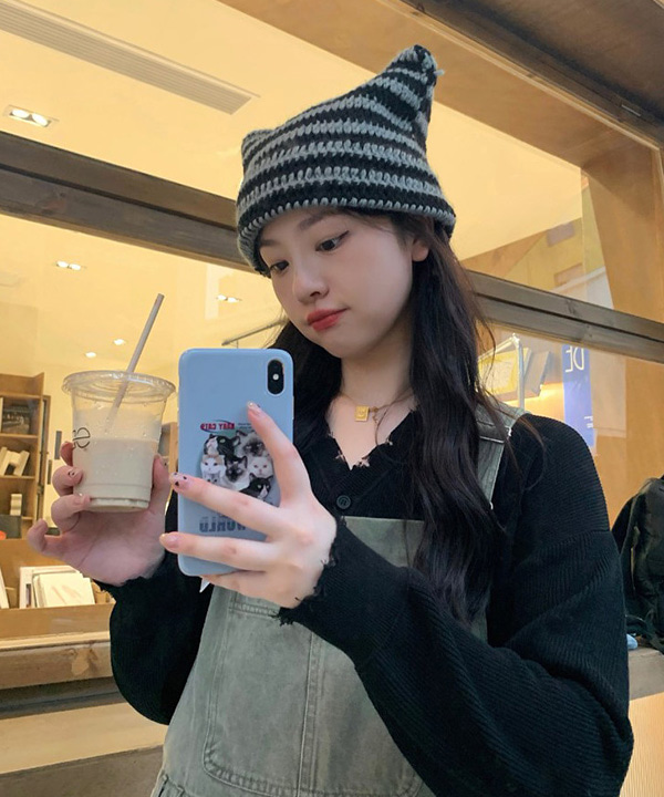 무료배송 깨비꼬깔니트 비니모자 (블랙+그레이,퍼플+그린,아이보리+그린,아이보리+브라운,핑크+브라운,레드+그린)