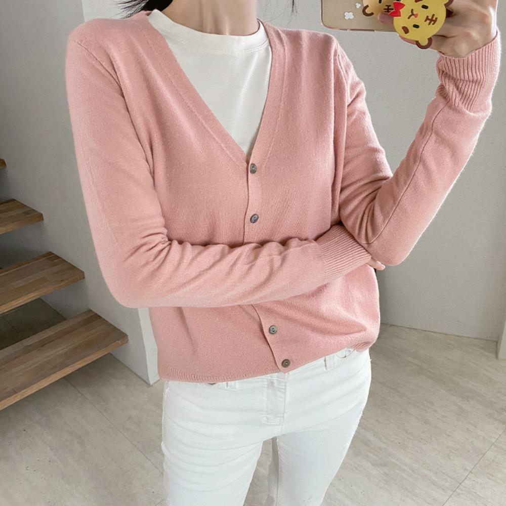 여자 브이넥니트 기본 스판 사무실 회사 가을 가디건