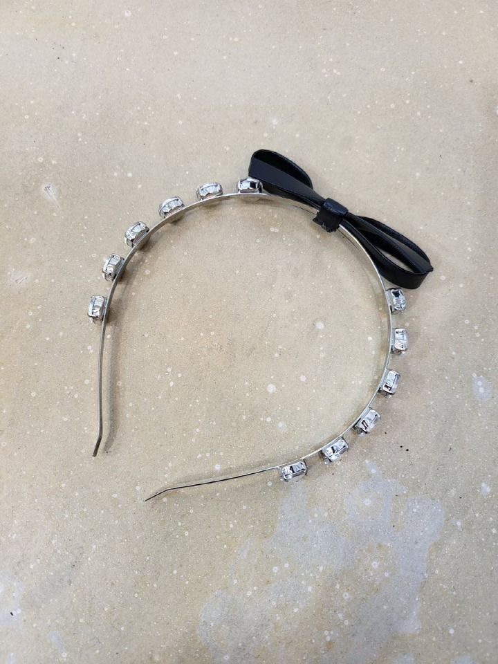 (신상,무료배송)메우메우 큐빅 가죽 리본 슬림 머리띠 one color