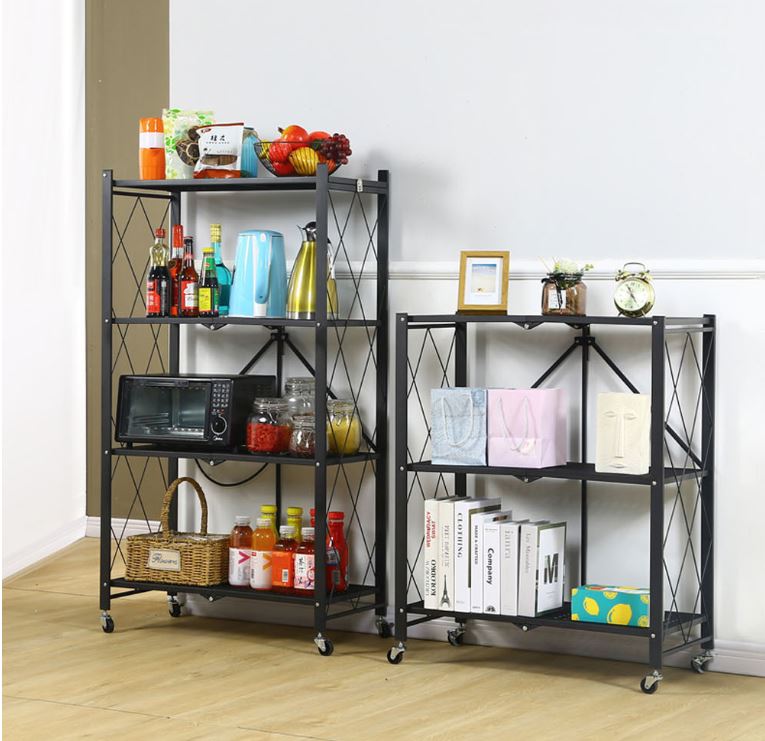 [접이식 주방 선반] 2색상 원터치 폴딩 정리대 👨🍳 키친 부엌 수납 보관 이동식 바퀴 펜트리 주방 용품 소품