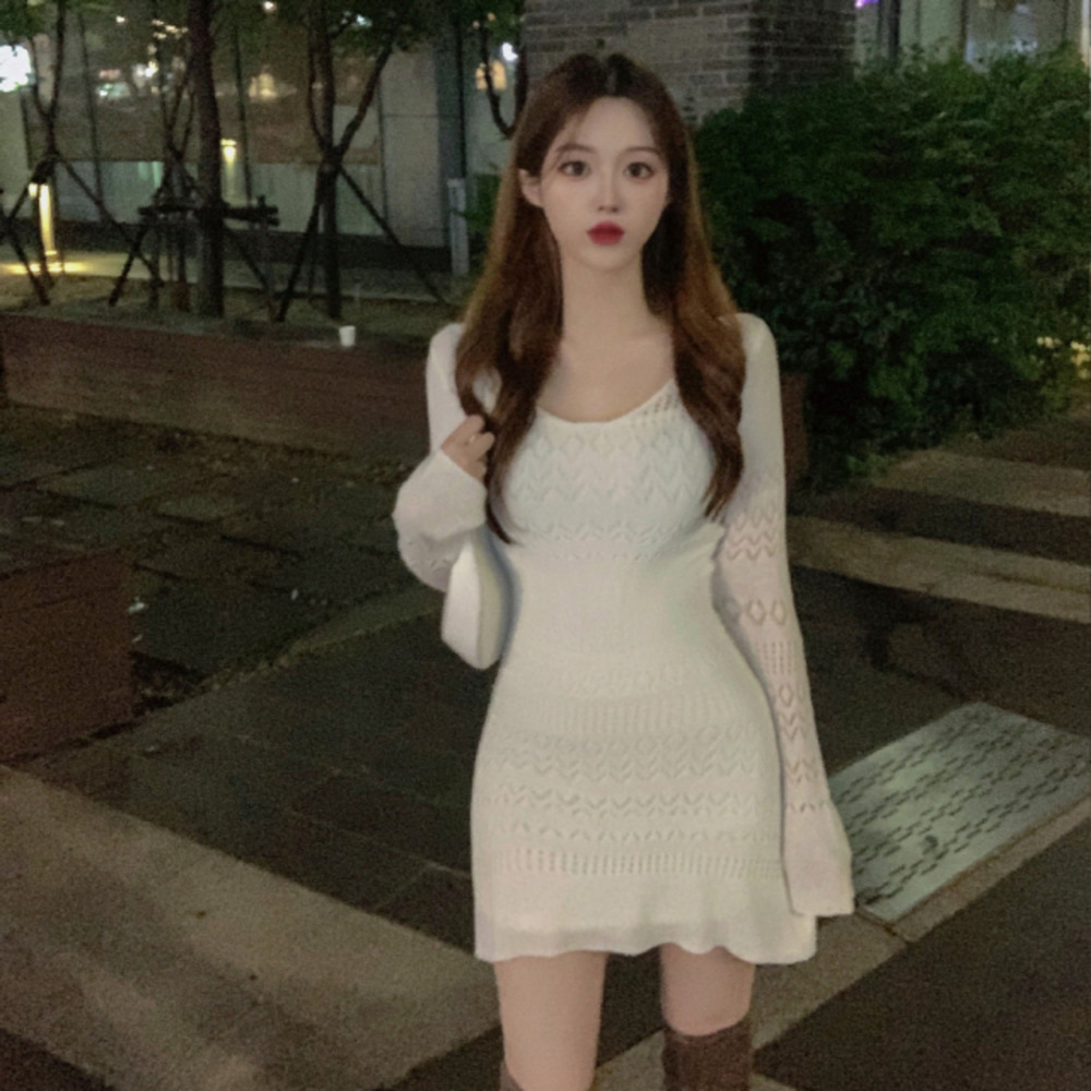 무배🚀[진짜추천ㅠ최강여리💕/부분당배] 슬립SET 뜨개 니트 미니 원피스 글램핏 펀칭 여신 오프숄더 이너SET H라인 A라인 머메이드 나팔 소매 브이넥 슬림핏 봄 가을 간절기 데이트룩 벚꽃룩 2COL
