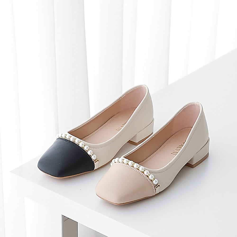 2.5cm 진주 배색 플랫슈즈 단화 여성 로우힐 구두 BO774C