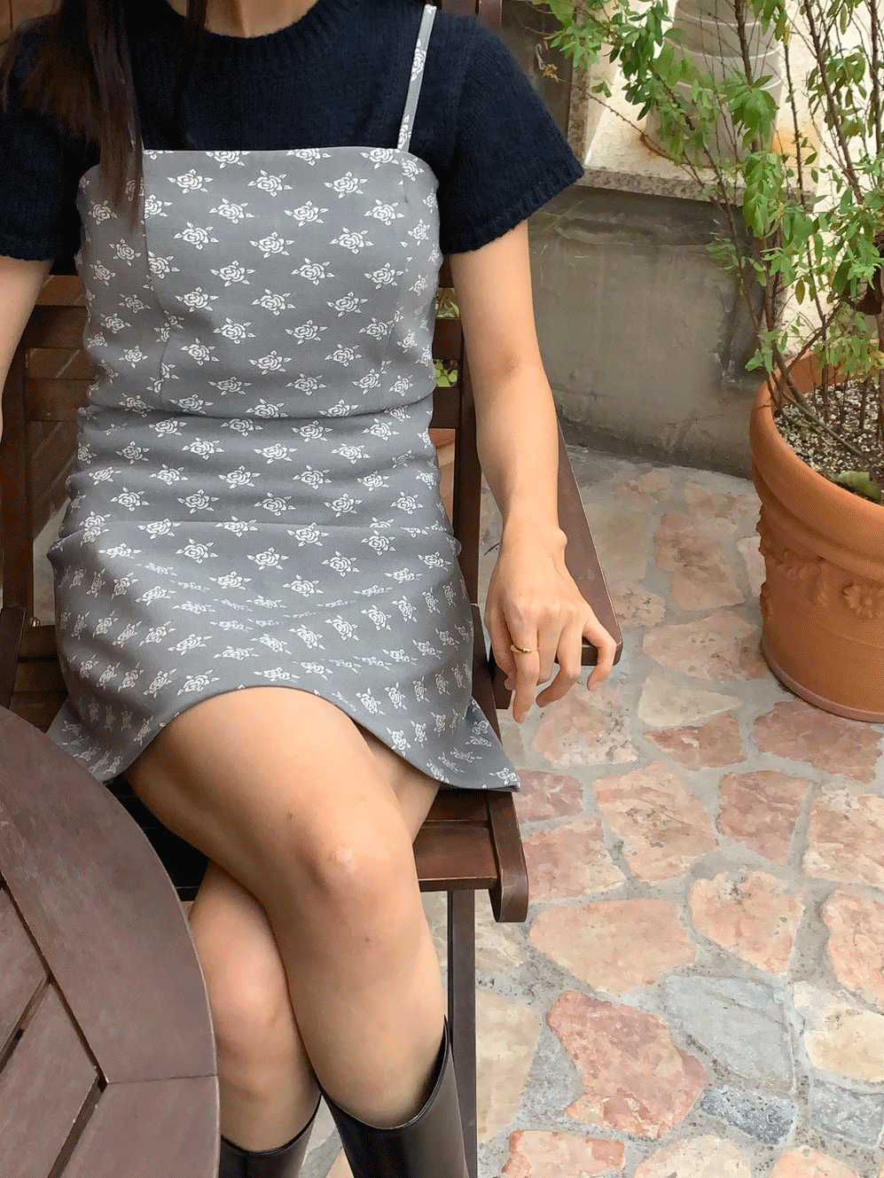 클래식 슬림핏 플라워 레이어드 원피스 -그레이