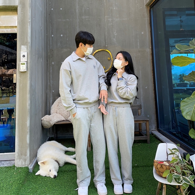 [강추코디🔥] 남여공용 레터링 크롭 맨투맨 와이드팬츠 트레이닝복 세트 커플 시밀러룩