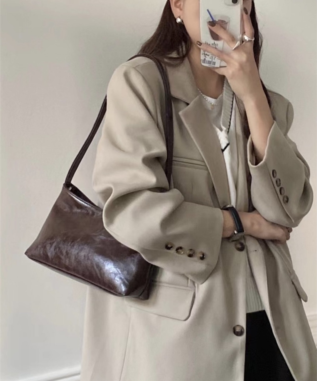 크랙 빈티지 비건 레더 심플 호보백 바게트백 숄더백 가방 블랙 실버 카멜 브라운 베이지