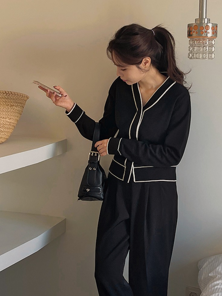 [골프웨어] 아프쉬 배색 브이넥 니트 가디건
