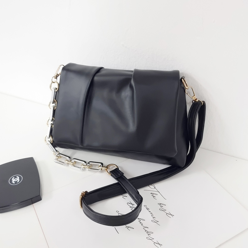런트 아크릴 체인 가죽 스퀘어 크로스백