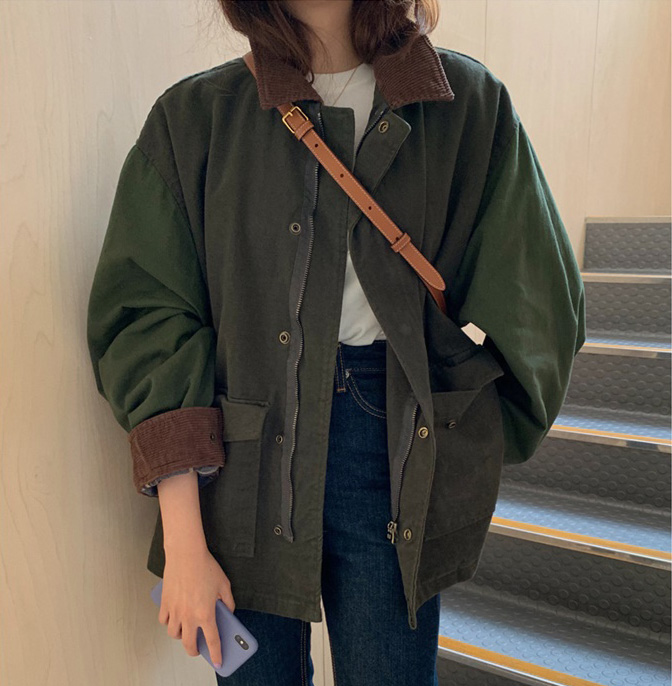 빠른배송🚚골덴 코듀로이 카라 오버핏 야상 투톤 점퍼 중간길이 미디엄렝스 야상재킷레이디 투톤 헌팅 자켓/ 골덴카라 캠퍼룩 가을 간절기 아우터 초겨울 헌팅재킷 야상 자켓/ 대학축제 캐주얼 캠퍼스룩 데일리 일상 편하고 예쁜 아우터 지금 입어야 예쁜 야상 투톤