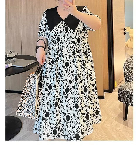 (고퀄자체제작)(XL~4XL) 블랙 카라 패턴 원피스 - 여성 여자 여름 빅사이즈 큰사이즈 예쁜 페미닌 데일리 여친룩 롱 원피스