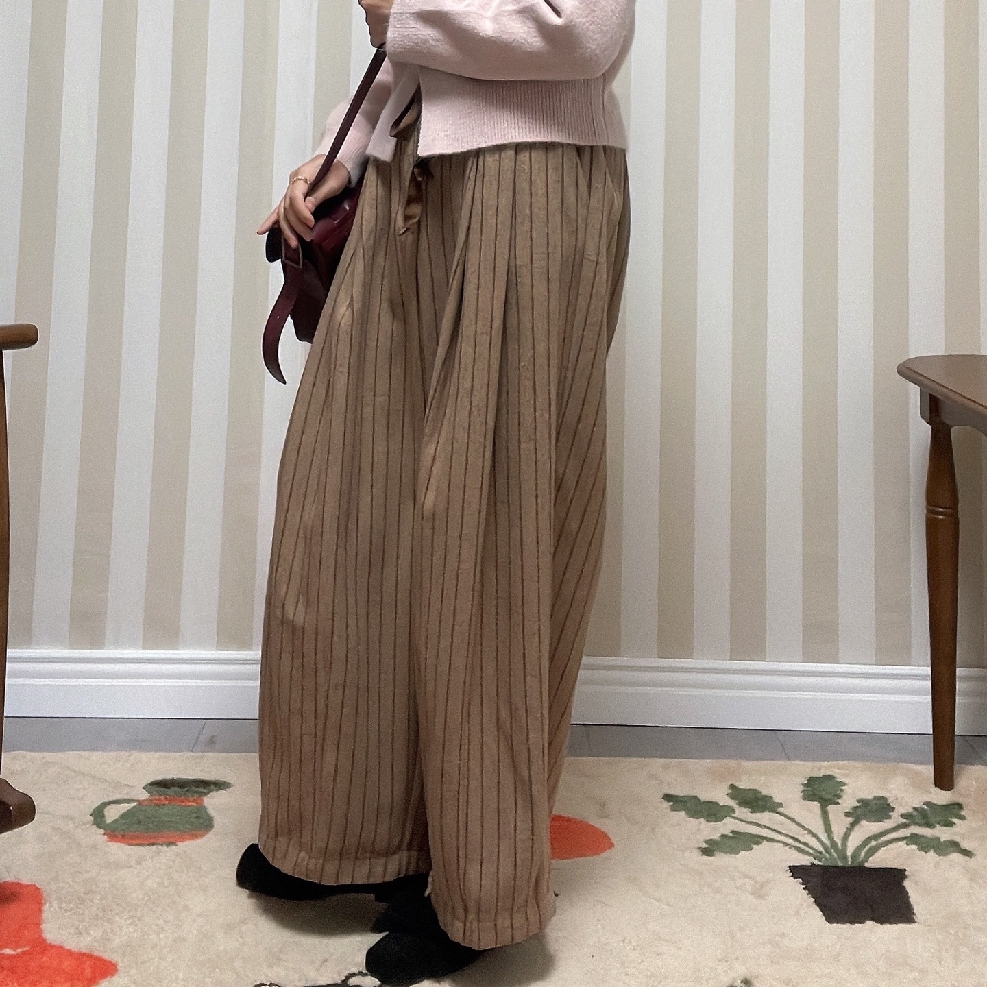 [55-88]하체커버'◡'도톰모직 와이드 스티치 밴딩 배기팬츠(하이웨스트 벌룬 항아리 리본 통큰 하비)
