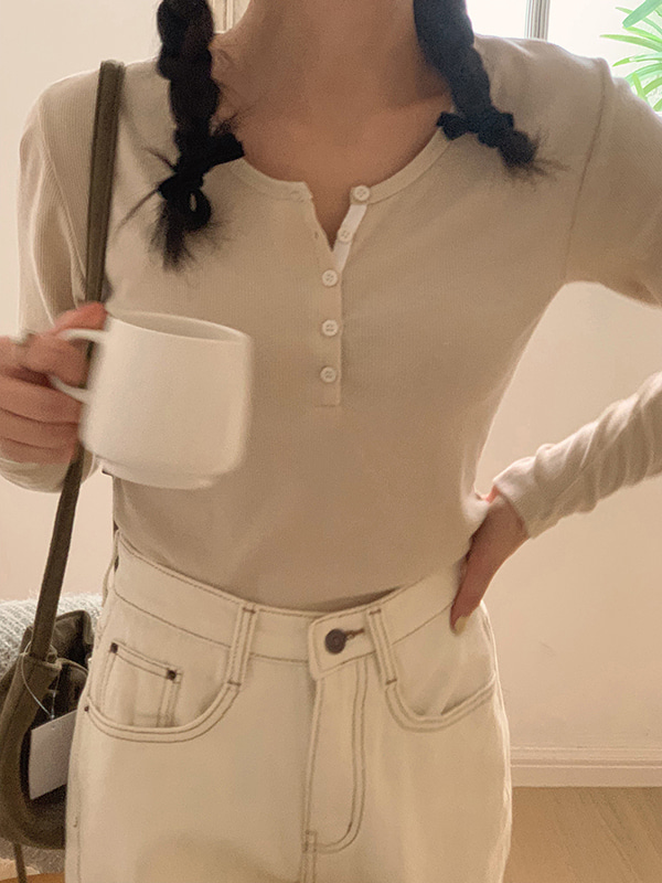 센츠 버튼 슬림핏 데일리 티셔츠(4color)