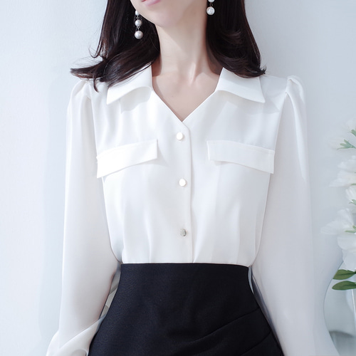 [도톰한🔥겨울원단] 어텐드 오픈카라 포켓 가을 하객룩 퍼프블라우스/4color