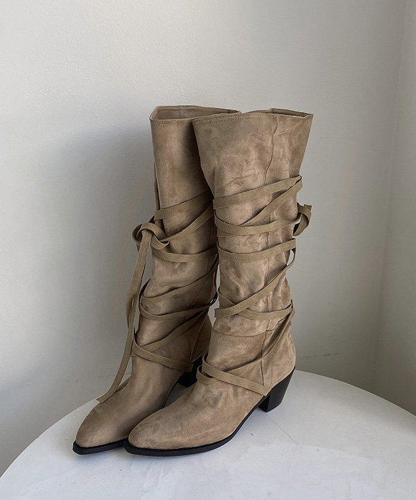 루프 레이스업 슬라우치 미들 웨스턴부츠