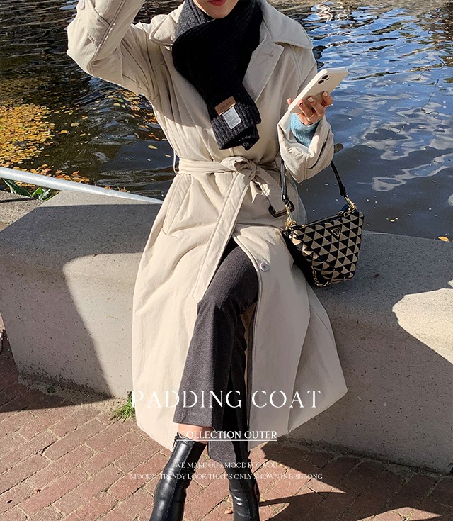 데이먼 벨트 롱패딩코트(2color) [허리끈 스트랩 허리띠 래글런 롱패딩 롱코트 트임 비조버튼 6온스 누빔 허리잘록 겨울코트]