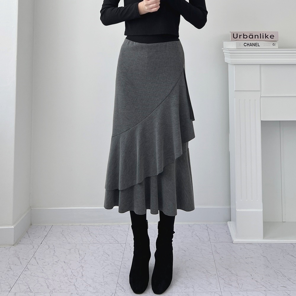 하이웨스트 니트 플레어 롱 치마레깅스 프릴 레이스 주름 스판 치랭스