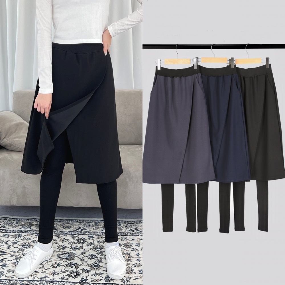 플레어 니트 랩 치마레깅스 레이어드 차콜 네이비 블랙 스판 롱 치랭스