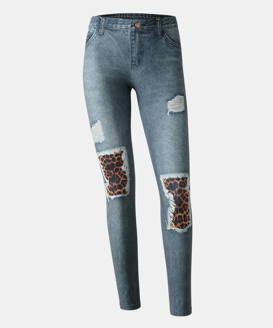 메세나 데미지드 레오파드 여성 데님 레깅스 제깅스 청바지 프린팅 허리밴딩 기모스판 팬츠 쫄바지 기능성 운동복 요가복 스포츠웨어