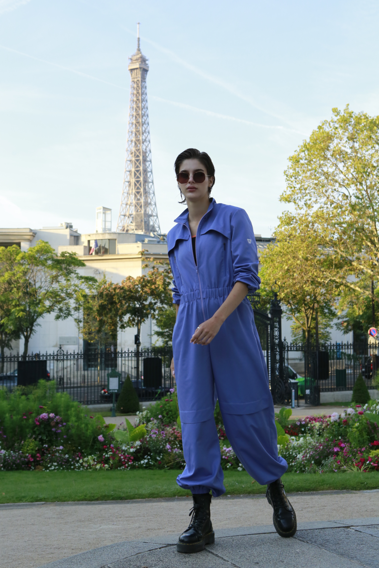 유니크한 연보라 컬러. 라벤더블루 점프수트.