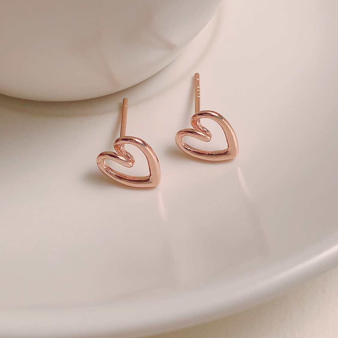실버 925 드로잉 하트 라인 셋업 귀걸이 세트 로즈골드
