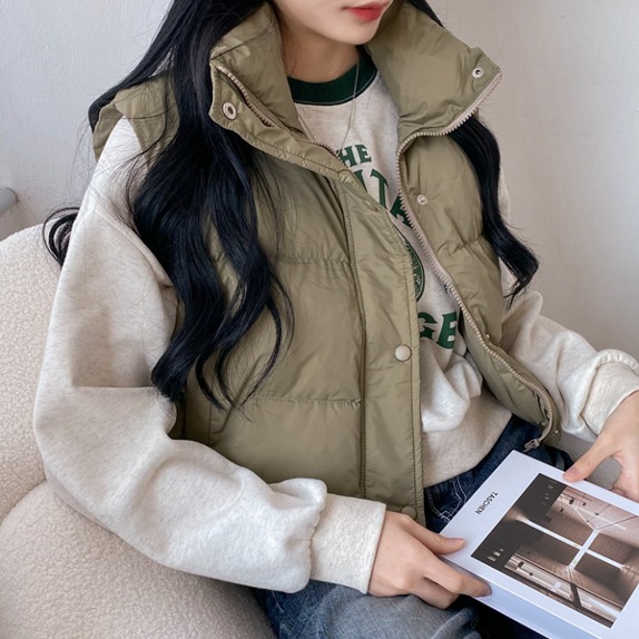 ★기획★모아프크롭패딩조끼(3c) 하이넥패딩조끼 숏패딩조끼 패딩베스트 웰론패딩조끼 집업 유광패딩조끼