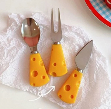 치즈 모양 커트러리 식기 세트 숟가락 수저 포크 나이프 귀여운 유니크 키치 하이틴 자취 자취생 여자 친구 생일 집들이 선물