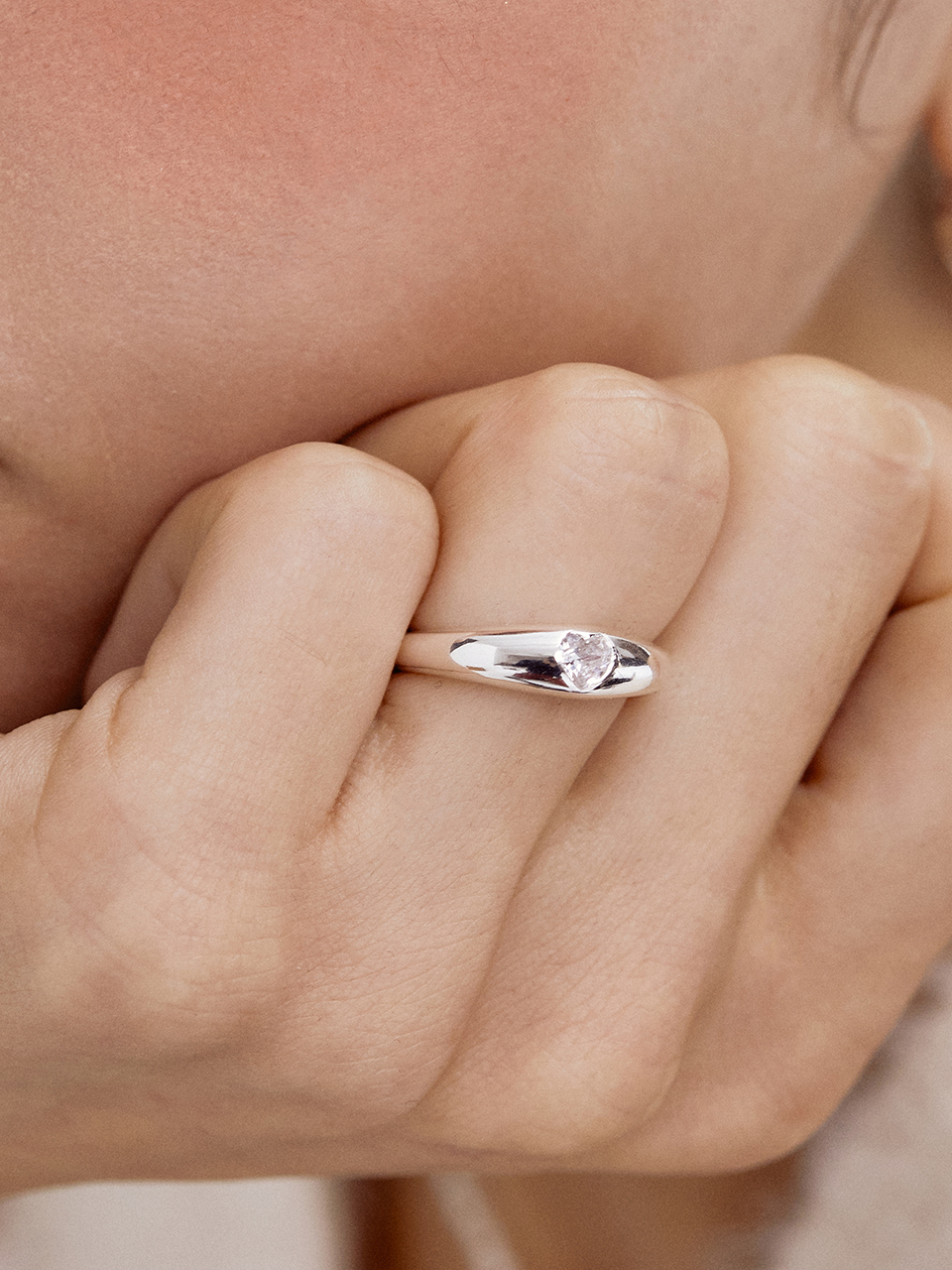 (SILVER925) Heart Cubic Simple Ring CR1818